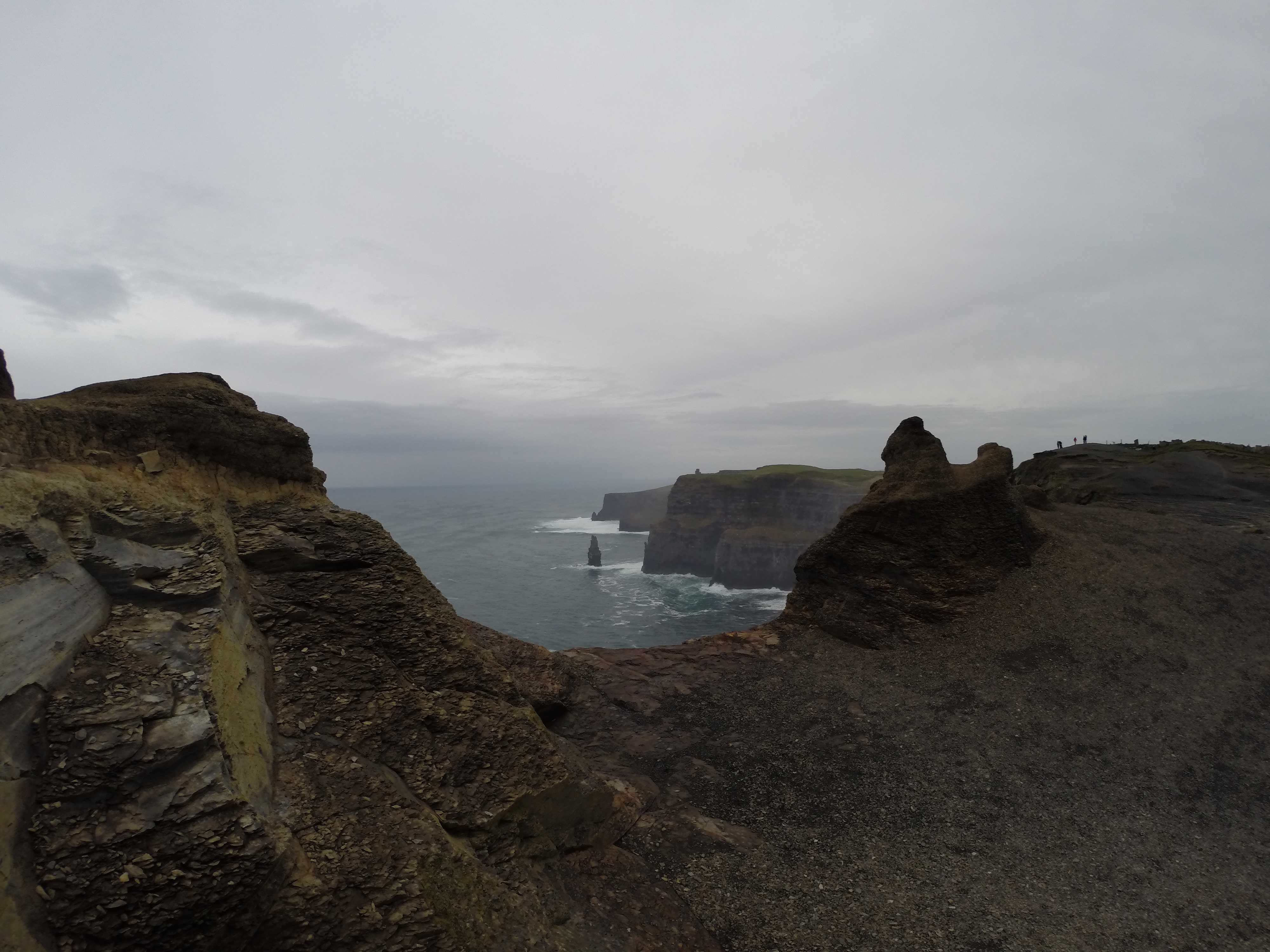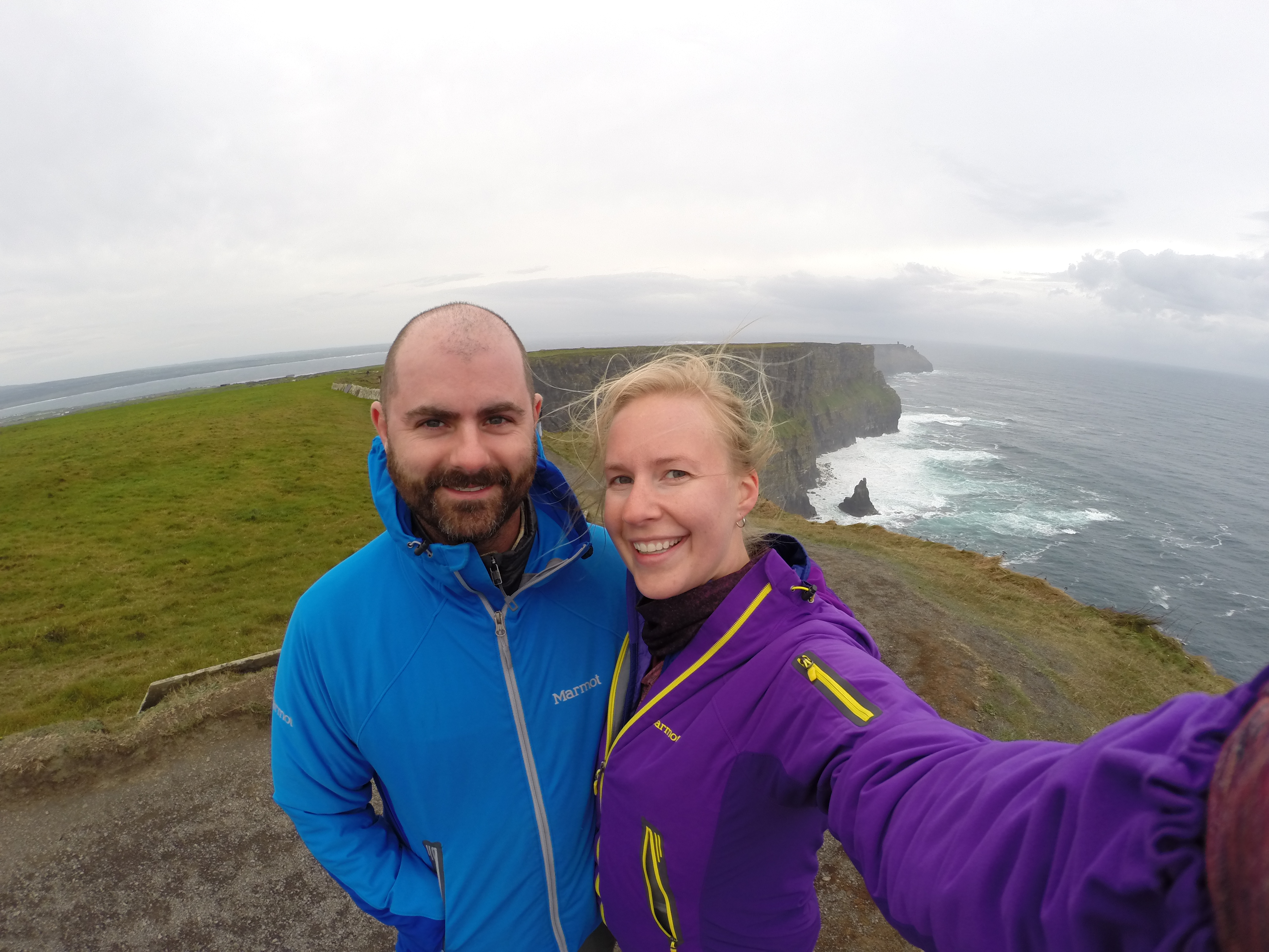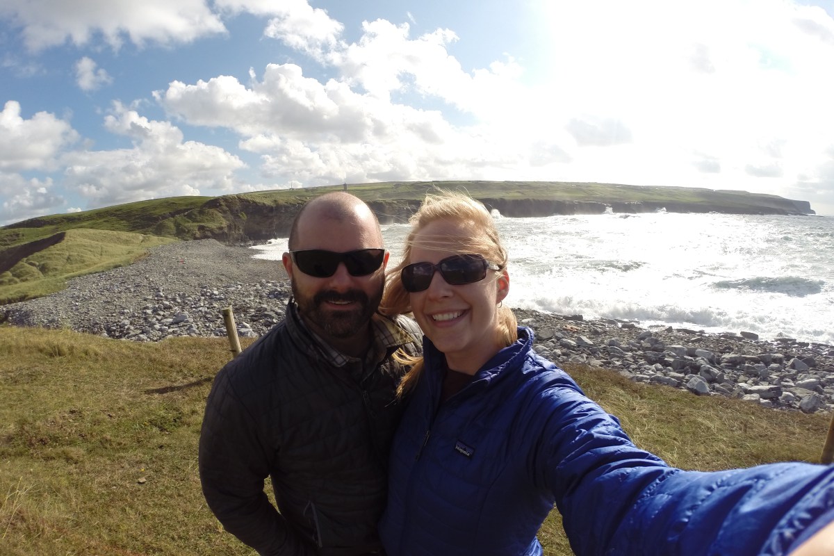 After we figure out we need to go in the opposite direction we looked up to see, directly in front of us, the edge of the Cliffs of Moher. Though distant, it was stunning. These wild jagged cliffs I had dreamed of were right there and my husband by my side.