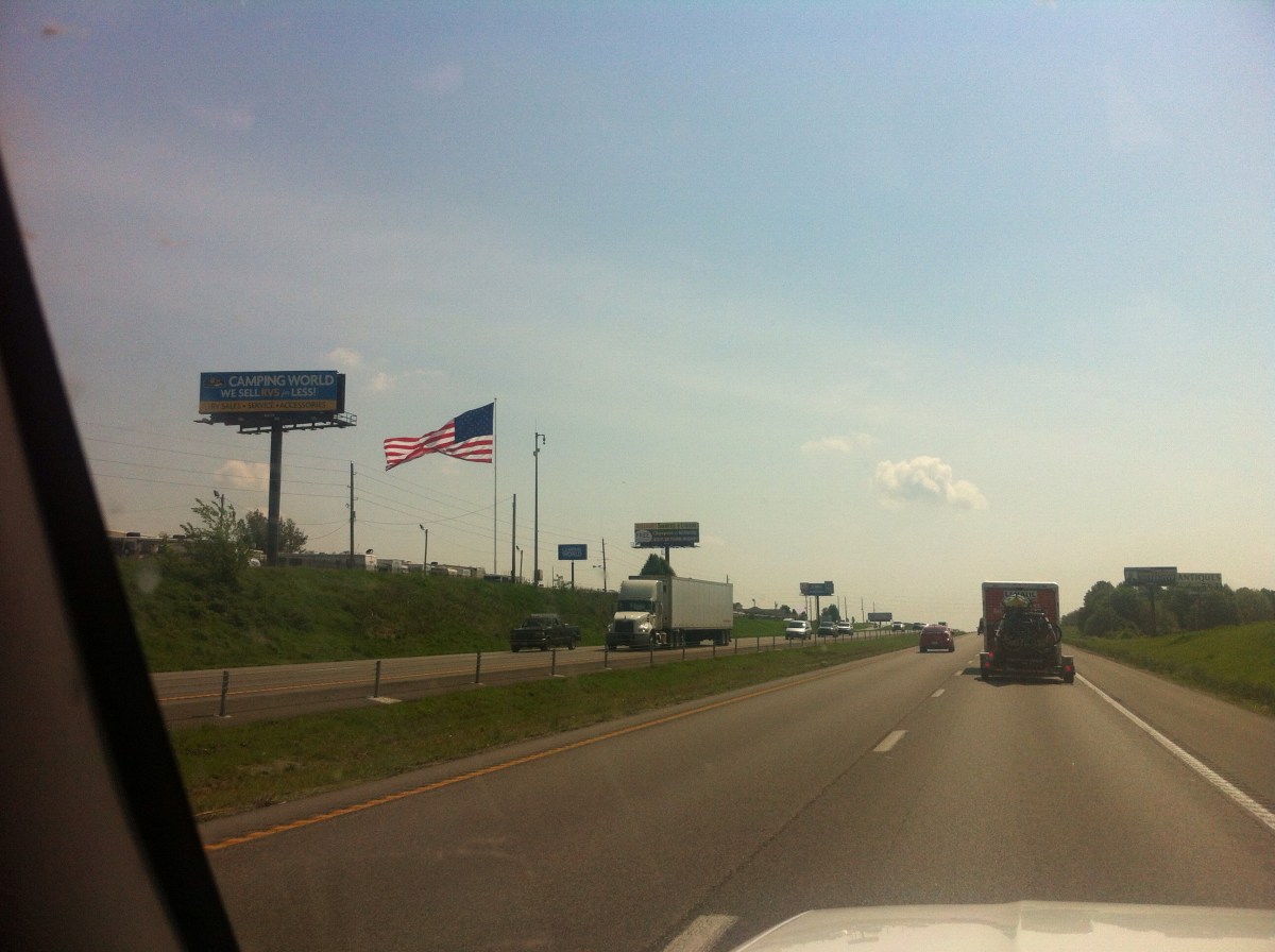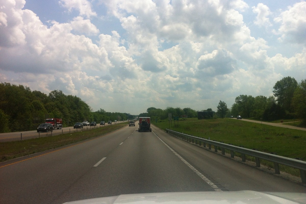 Yesterday was the last of our two planned long days. We drove 546 miles from Lawrence Kansas to Clarksville Tennessee. Today is the final stretch! Only 343 miles to go!