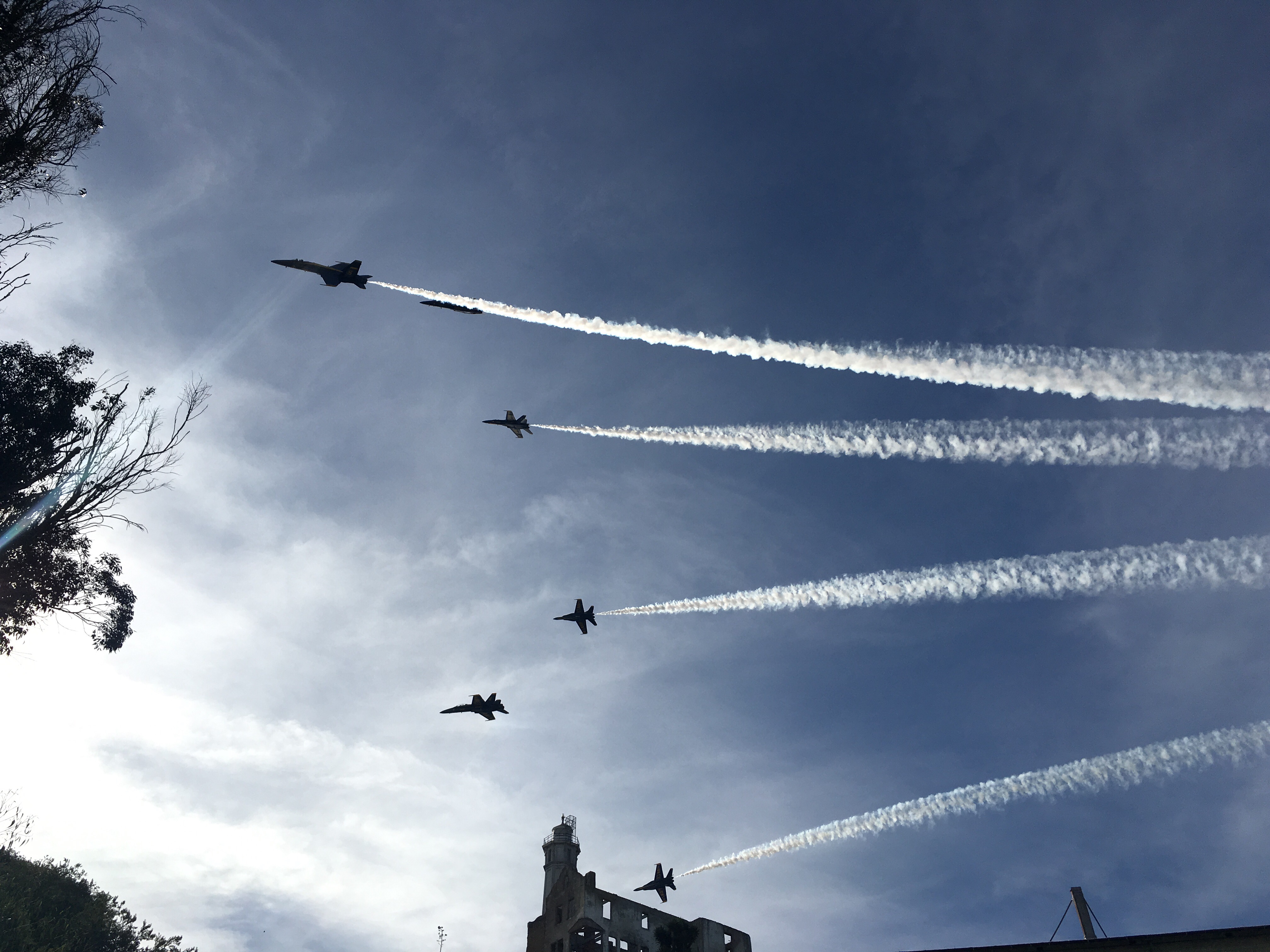 My favorite part of the whole trip was taking the Alcatraz island tour. The moment we got onto the ferry, the Blue Angels began their Fleet Week dance across the bay. It was amazing to be on the water with them flying directly overhead. As we exited the boat the guides corralled us like sheep into a corner on the island to go over common sense like don’t mess with birds or leave trash. I found myself sneaking further and further from the crowd drawn in by the Blue Angels soaring overhead and captured this image: